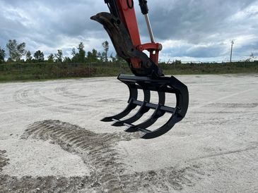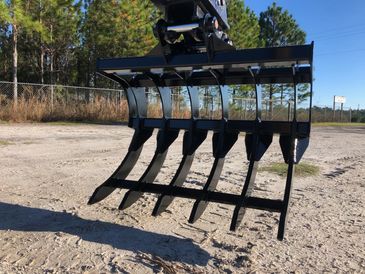 Built from high-strength steel and designed to handle high breakout forces, our excavator rakes feature long, curved tines that penetrate and pull material efficiently — ideal for forestry, site prep, and demolition cleanup. Whether you're separating roots from soil or stacking brush for burn piles, this rake delivers controlled performance and serious durability.