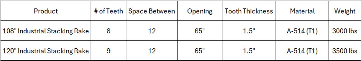 144" Industrial Loader Stacking Rake (Priced per Machine)
